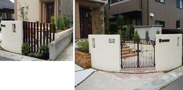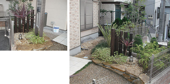 自然素材を使用したイングリッシュガーデンとモダン和風の庭を造りました。